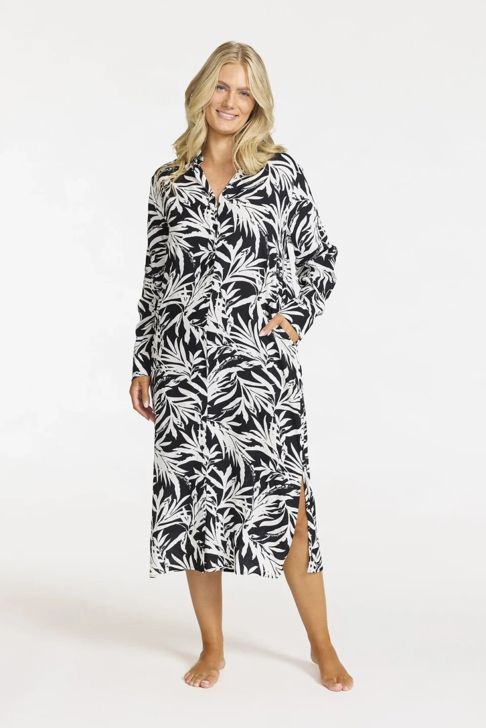 Knappar hela vägen så att du kan använda den som både klänning eller helt öppen.