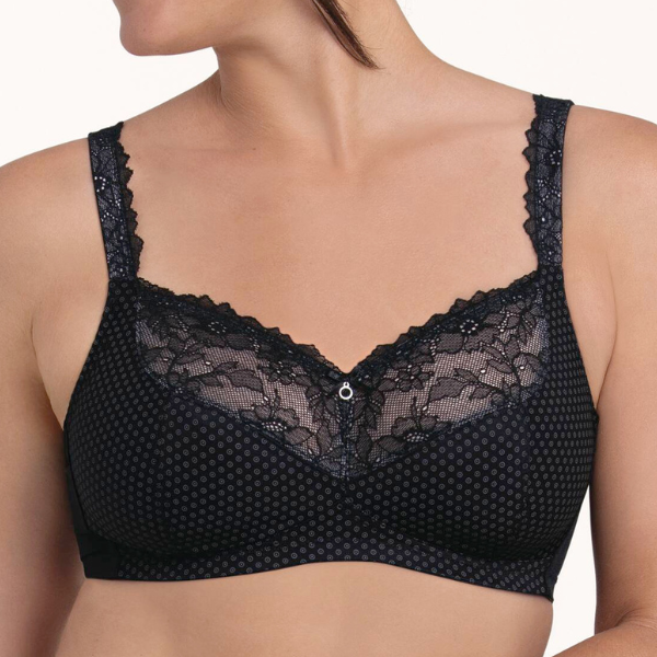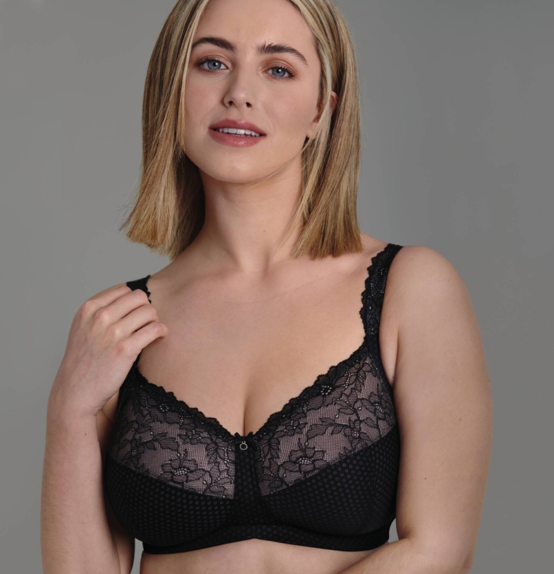 Eloise mjukbh är en romantisk bh utan byglar med vacker spets upptill på kupan. Fickor för protes, men funkar precis lika fint till dig som inte behöver fickor. Den har elastiska och reglerbara axelband. Kuporna är sydda i tre stycken för extra support och passform.
