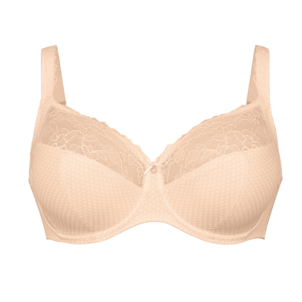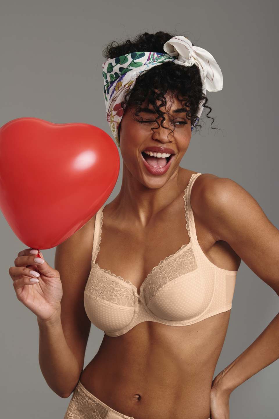 Eloise är en romantisk bh med vacker spets upptill på kupan och som har elastiska och reglerbara axelband. Kuporna är sydda i fyra stycken för extra support och passform.