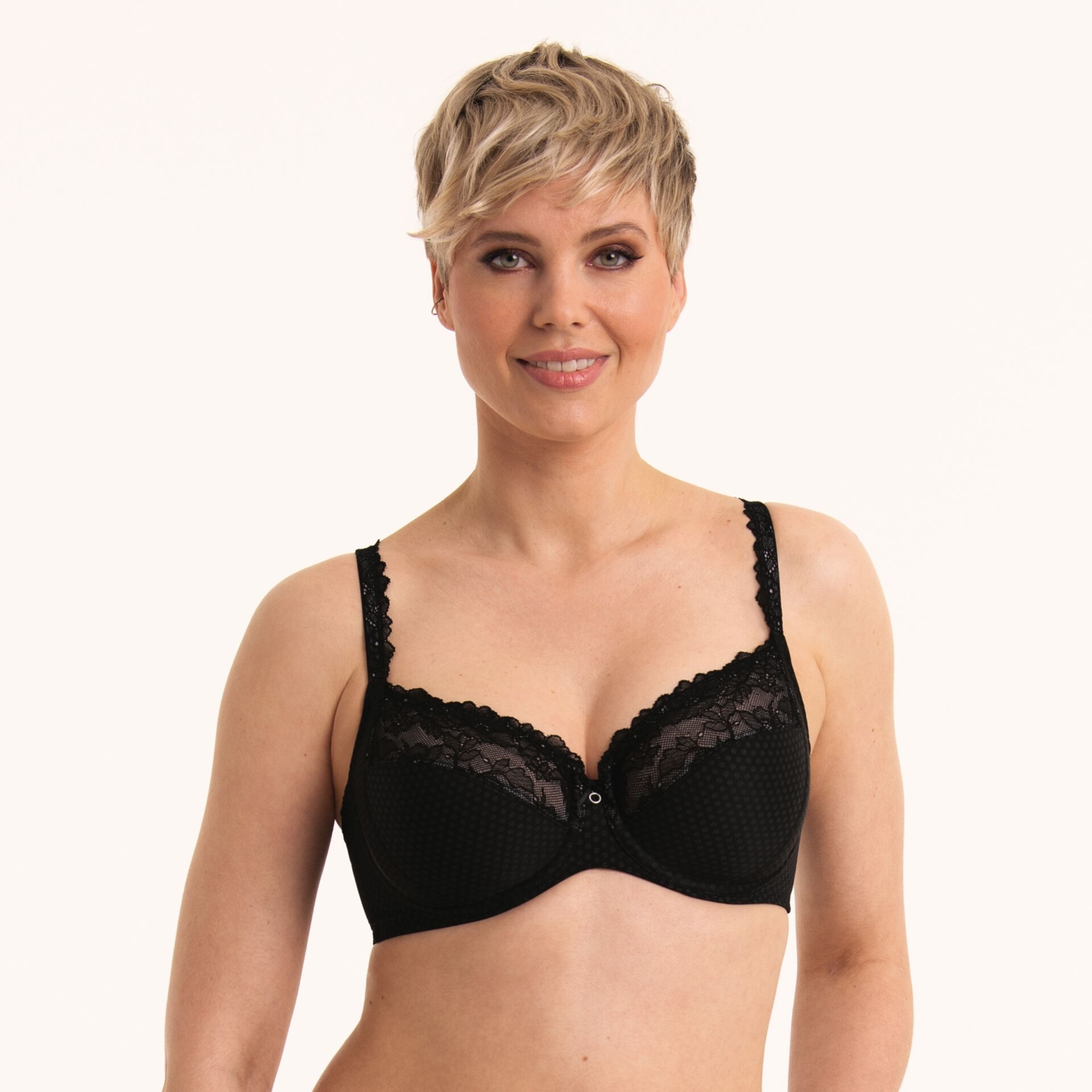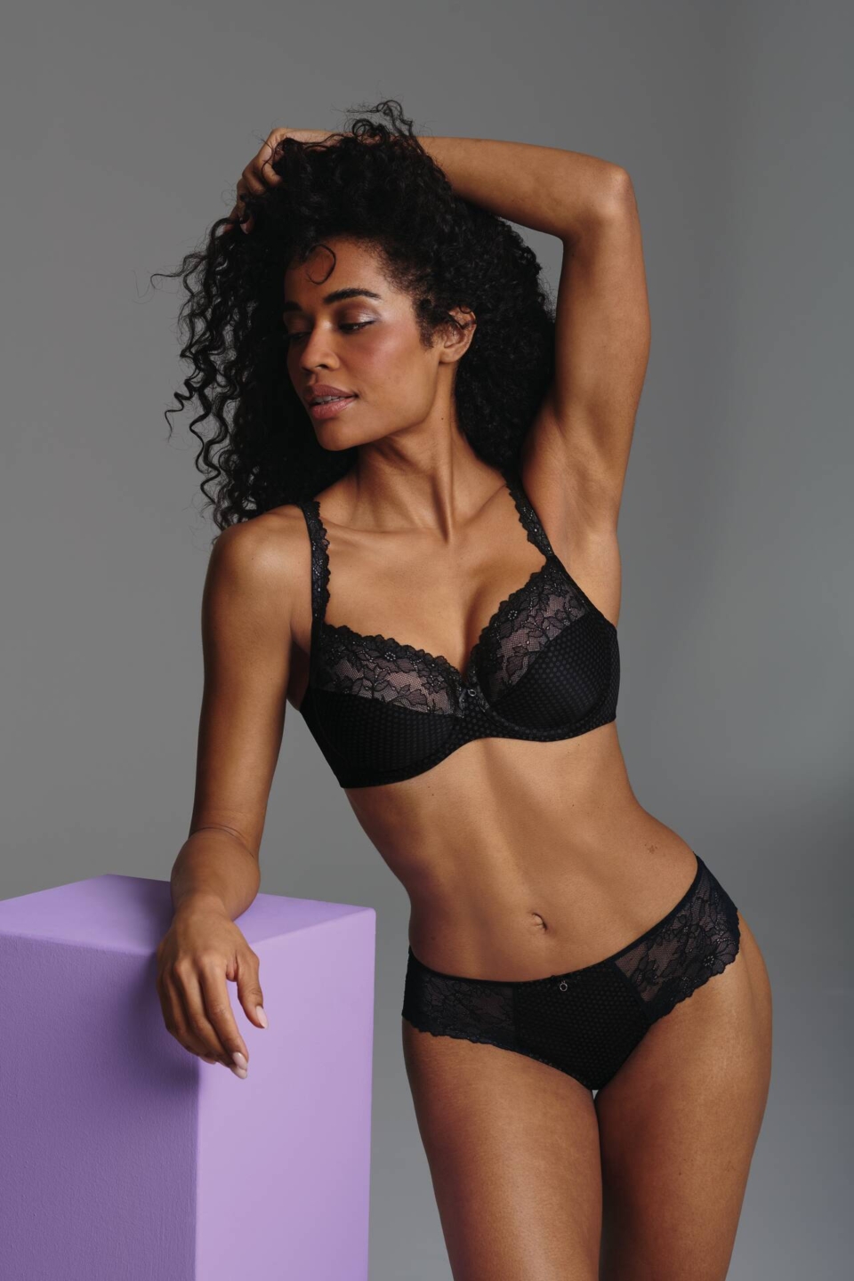 Eloise är en romantisk bh med vacker spets upptill på kupan och som har elastiska och reglerbara axelband. Kuporna är sydda i fyra stycken för extra support och passform.